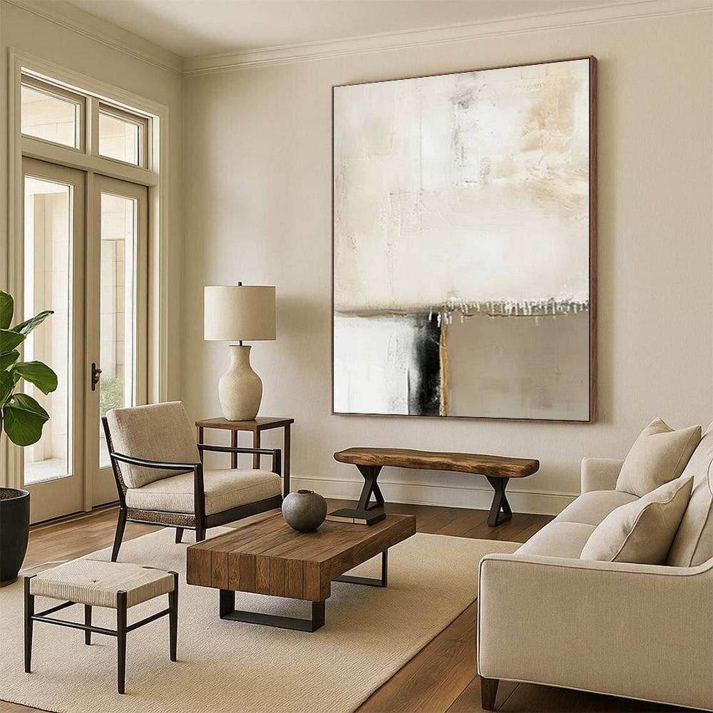 Acrylic Modern Art Paintings Beige, Black, and White Textured Abstract Art PT786