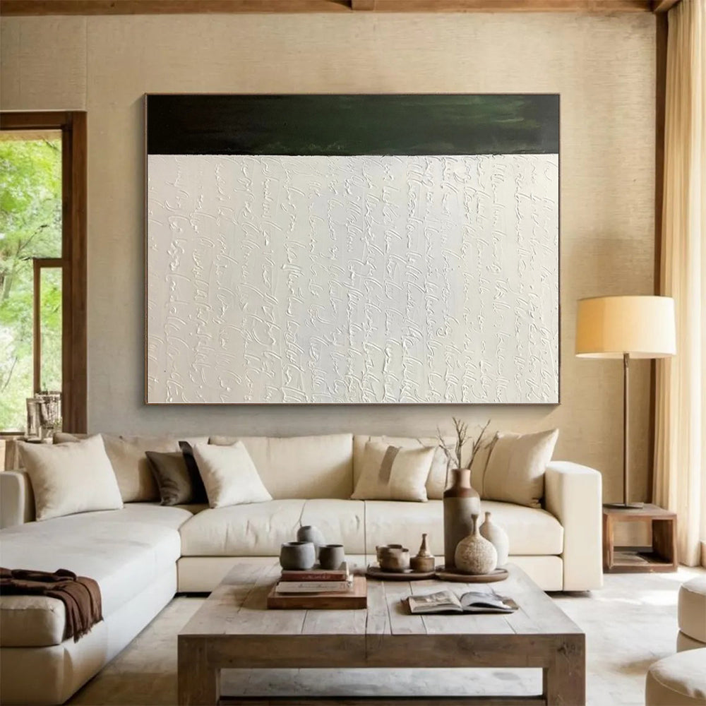 Hand-Painted Green & White Textured Calligraphic Abstract Painting On Canvas PT041