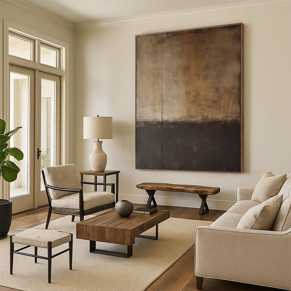 Hand Painting Brown and Black Textured Abstract Art PT761
