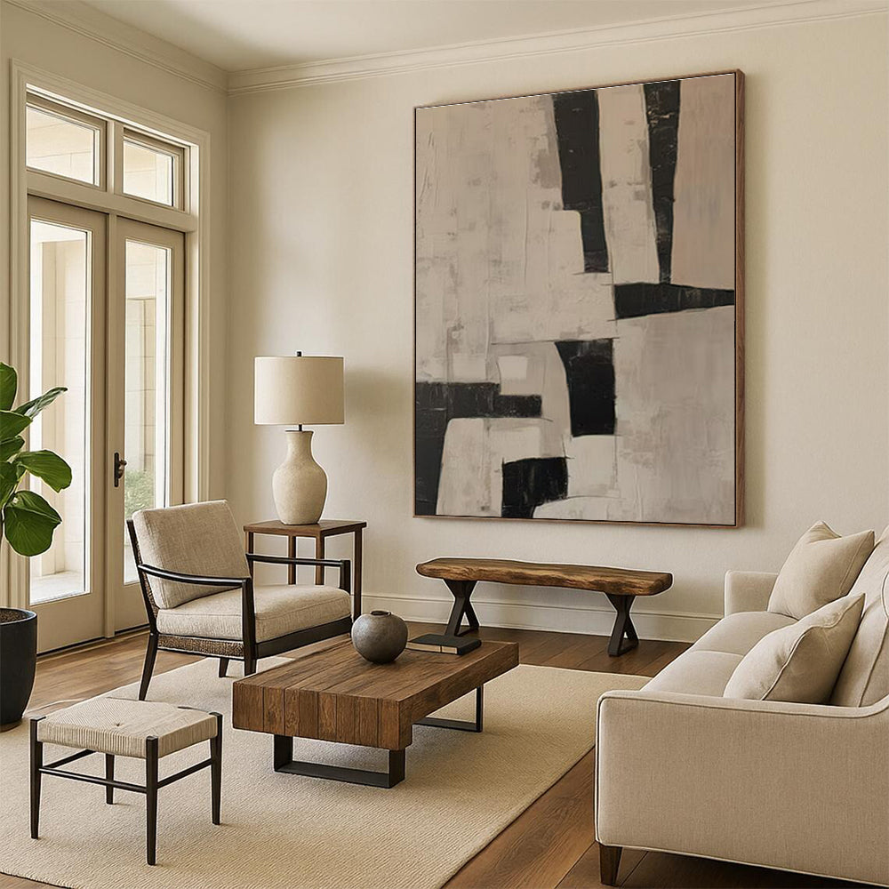 Minimalist Canvas Art Black and Beige Geometric Abstract Art PT634