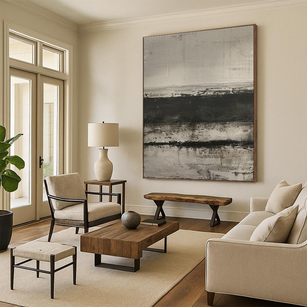 Minimalist Canvas Art Black and White Textured Abstract Art PT762
