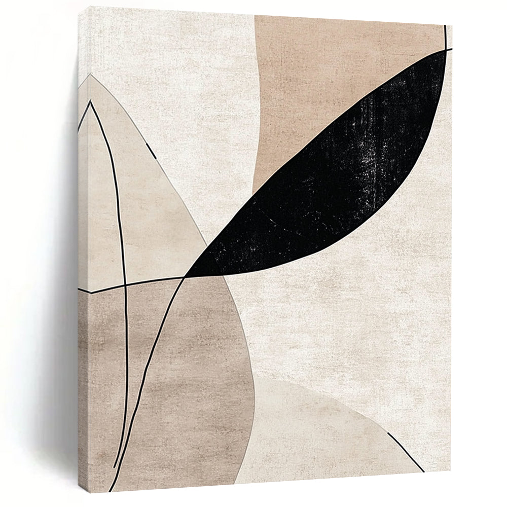 Modern Large Abstract Canvas Painting, Beige Black Gray Minimalist Geometric Abstract Art PT137